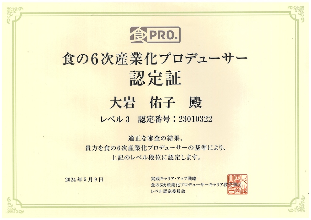 資格食の6次化プロデューサー Level3