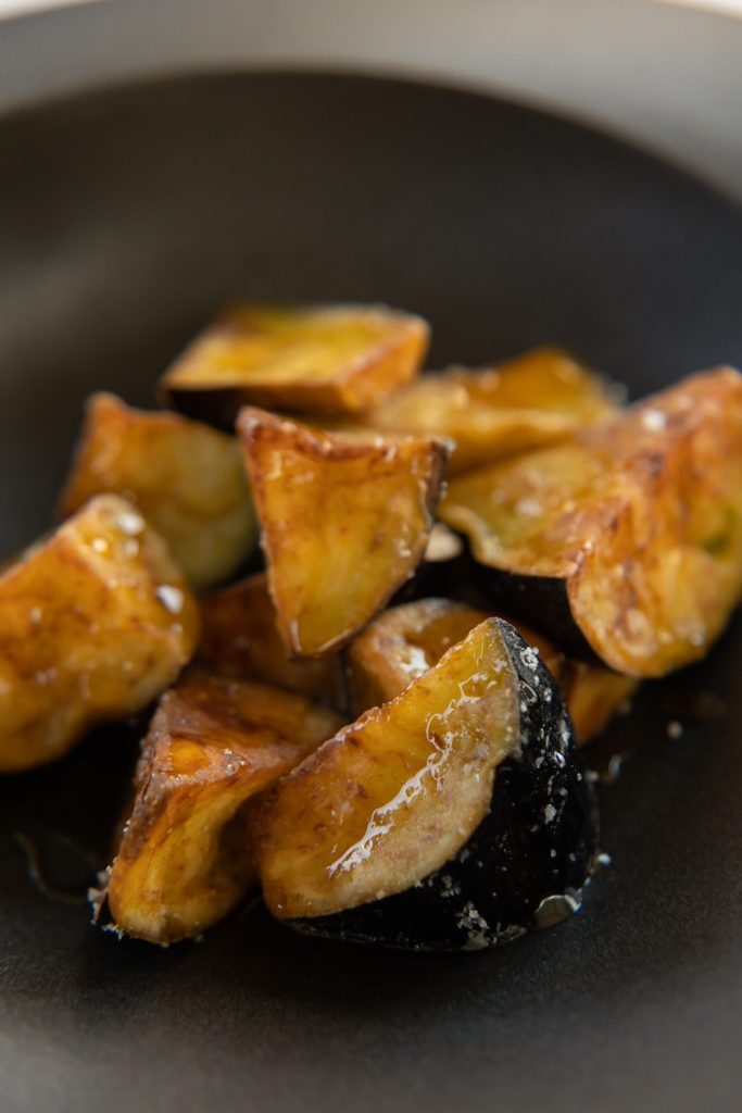 中でもナス嫌いな子供にも食べてもらいたいとの思いから生まれたレシピ「大学ナス」は子供だけでなく、商談会や園芸ハウス視察に来られたバイヤーやシェフさんにも試食としてお出しすることで「ナスがデザートに!しかも美味しい!」という想定外の体験をしていただけて多くの取引の成立に役立っています、大岩さんにはとても感謝しています。